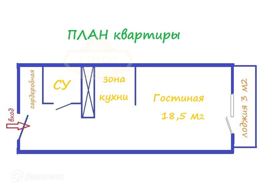 Жилая площадь 18.52 м2