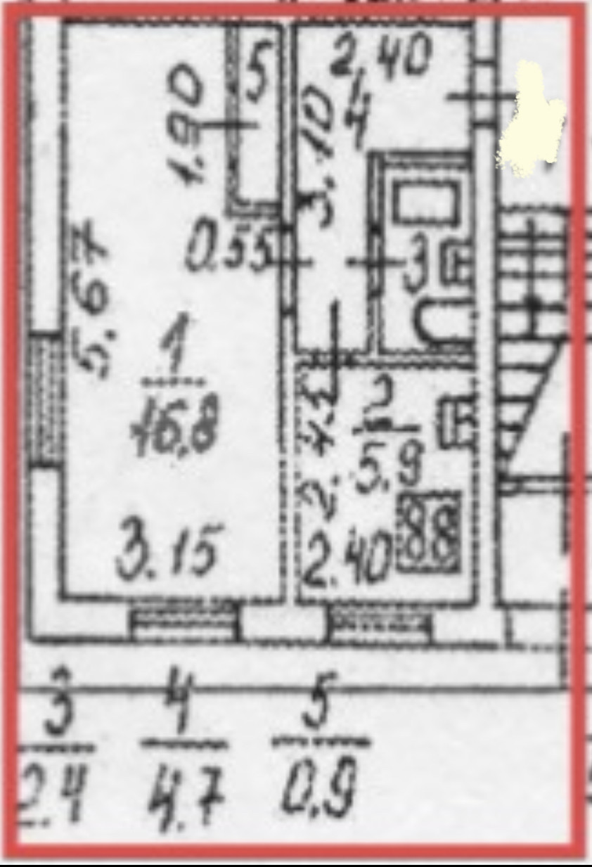 Жилая площадь 16.8 м2