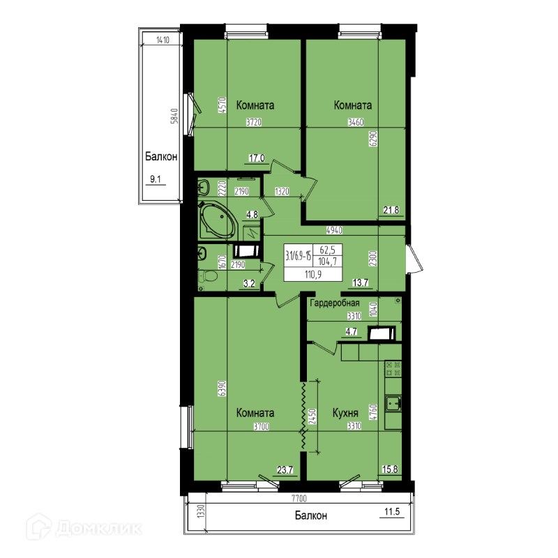 Общая площадь 104.7 м2