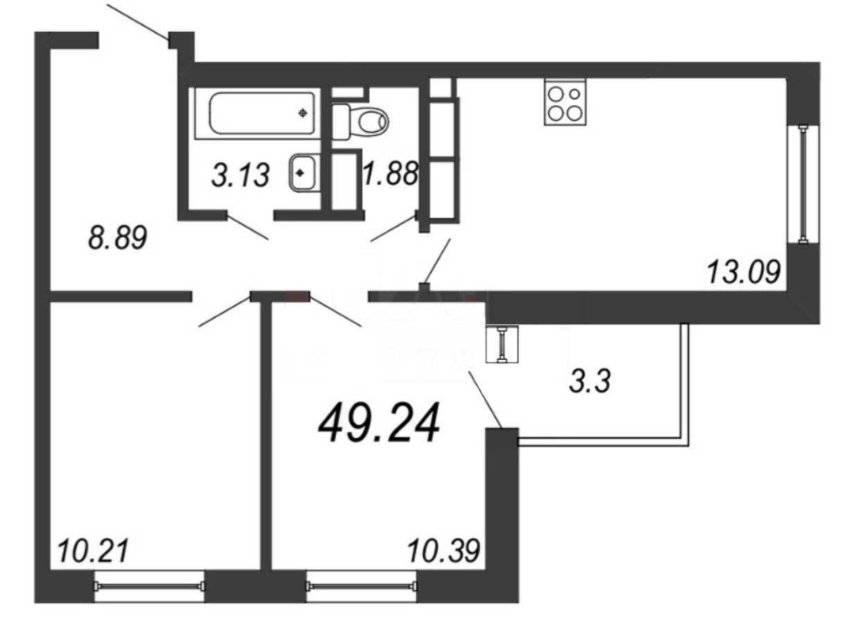Общая площадь 49 м2