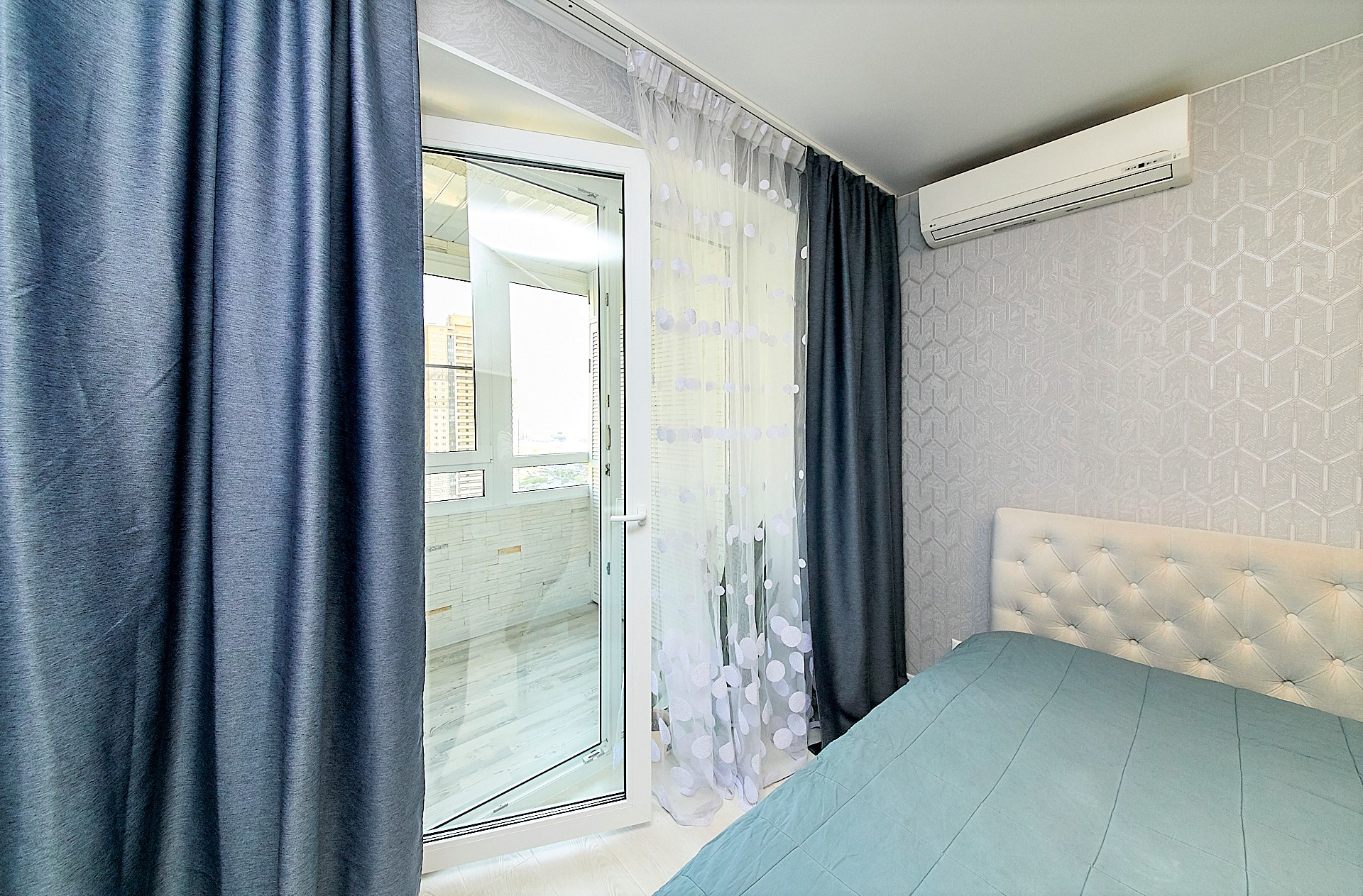 Квартира полностью готова к проживанию, очень чистая и ухоженная. Качественный ремонт из дорогостоящих материалов, панорамные окна в пол в обеих комнатах, межкомнатные двери «Инвизибл», шумопоглощающая металлическая входная дверь, утеплённая лоджия с полностью замененными стеклопакетами, тёплые полы на кухне, в большой комнате и прихожей, установлен кондиционер.
