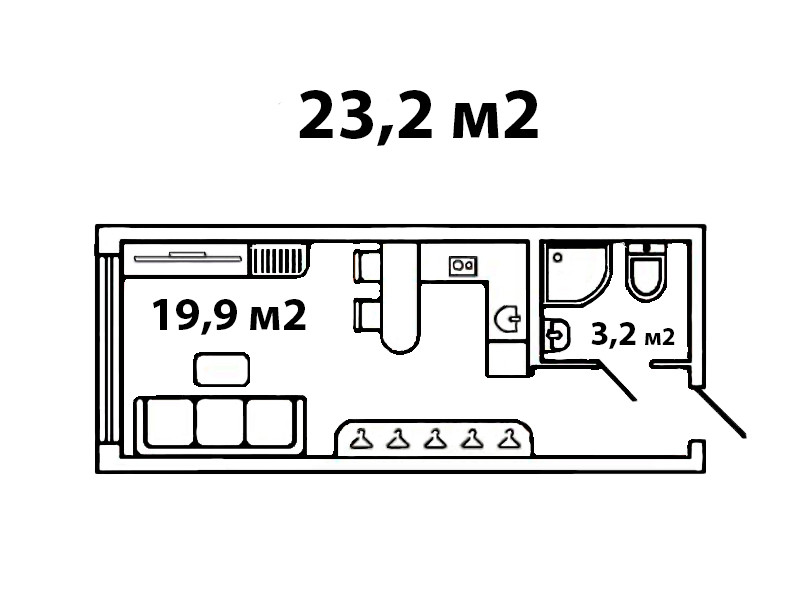Общая площадь 23.2 м2