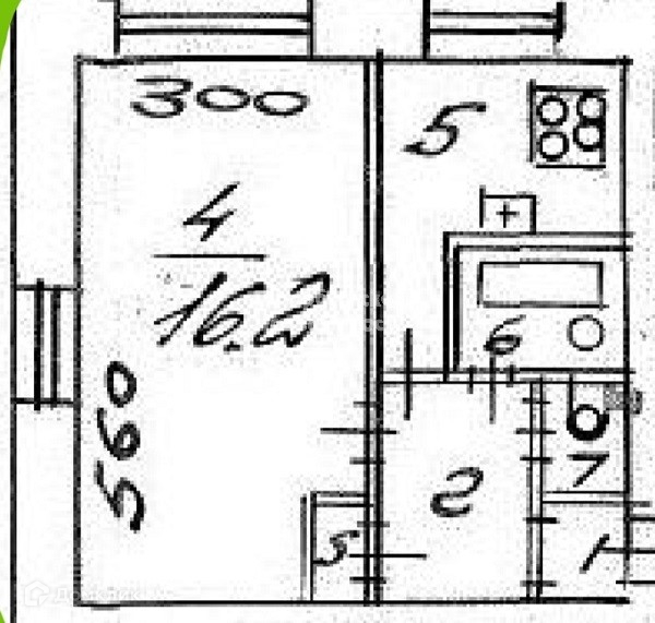 Жилая площадь 16.2 м2