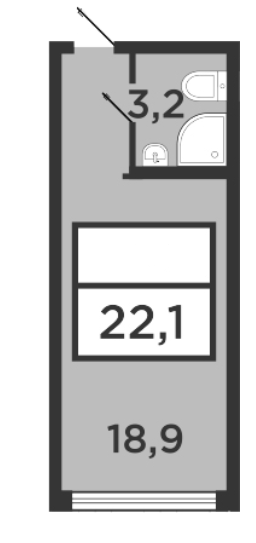 Общая площадь 22 м2
