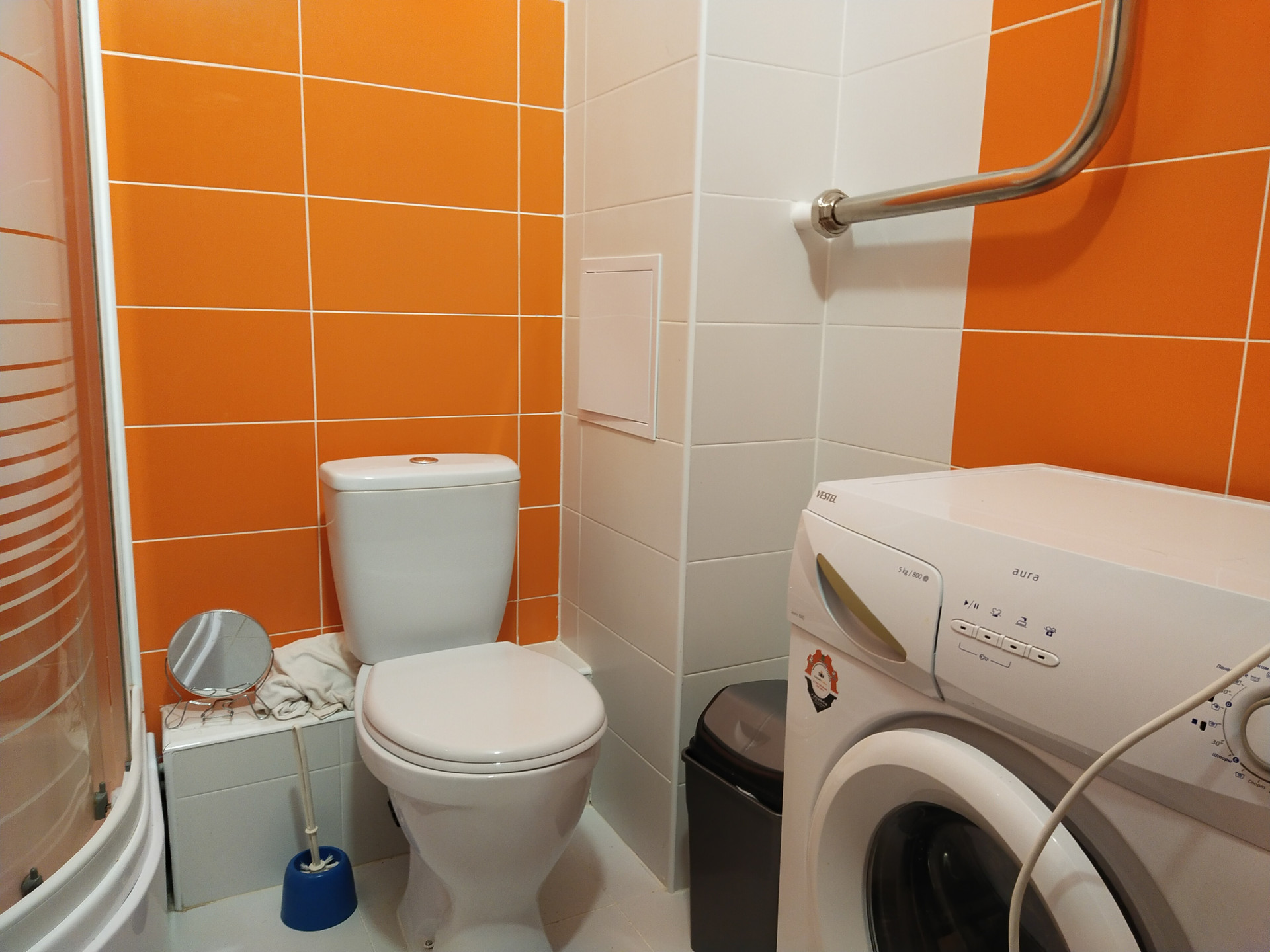 Панорамное остекление с энергосберегающими стеклопакетами, в ванной сантехника и плитка, потолки окрашены, на стенах обои под покраску.