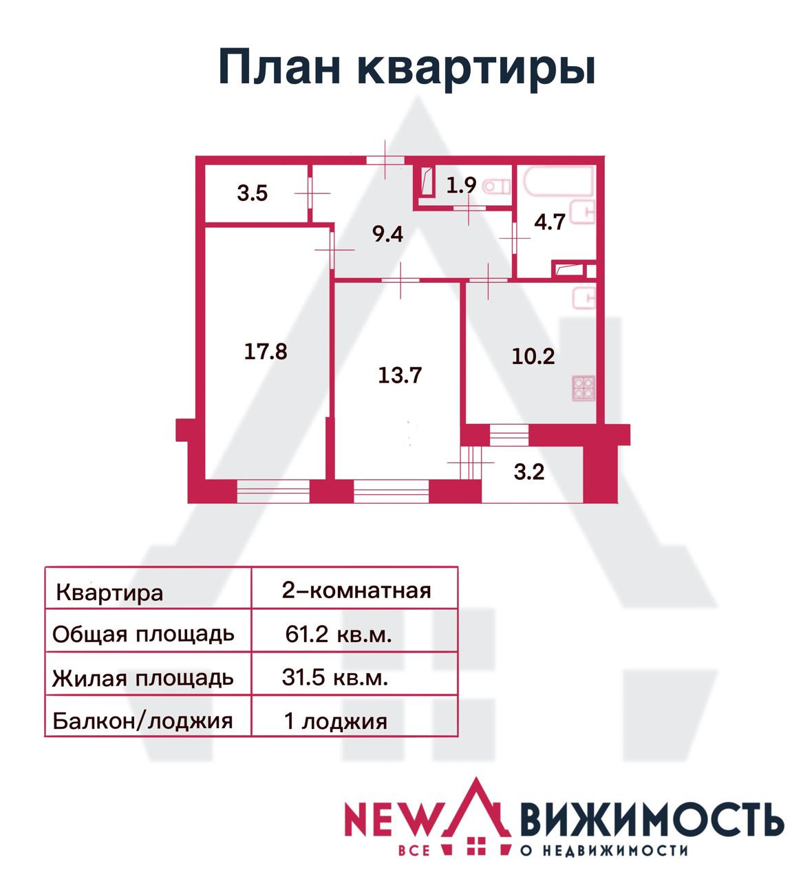 Общая площадь 61.2 м2