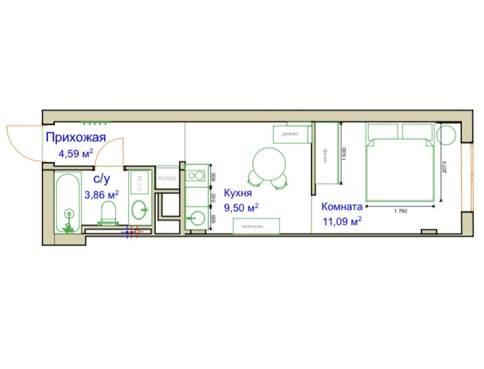 Площадь квартиры 29м2