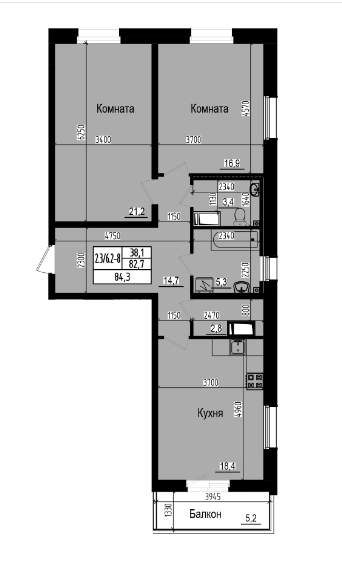 Жилая площадь 38.1 м2