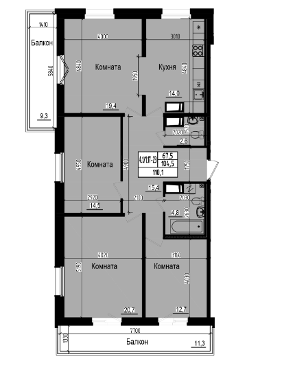 Продаётся 4-к.кв. в Жилом комплексе «Прагма City» , общей площадью 125.1м2 ( 104.5 +20.6 балконы)