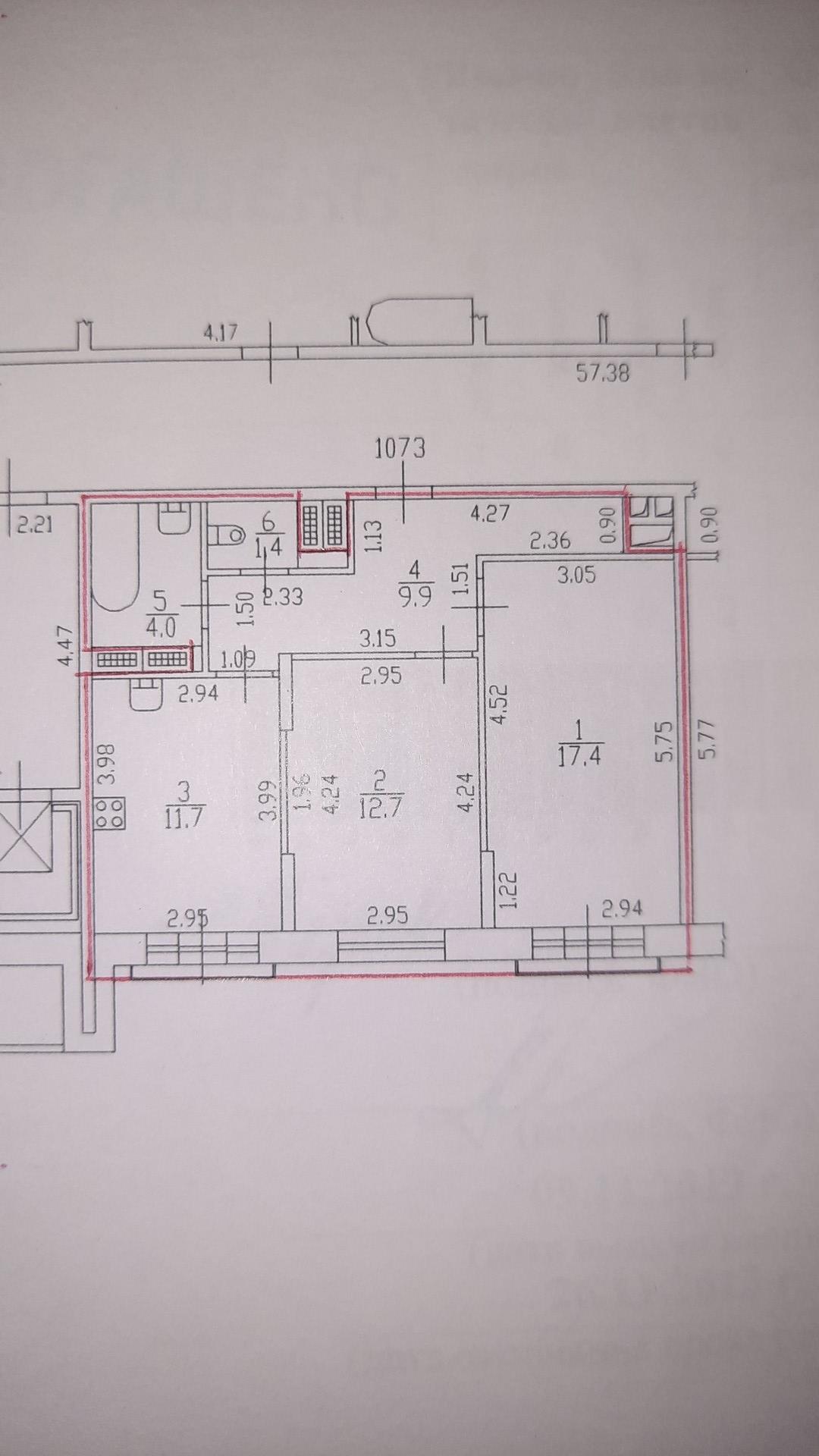 Общая площадь 57.1 м2