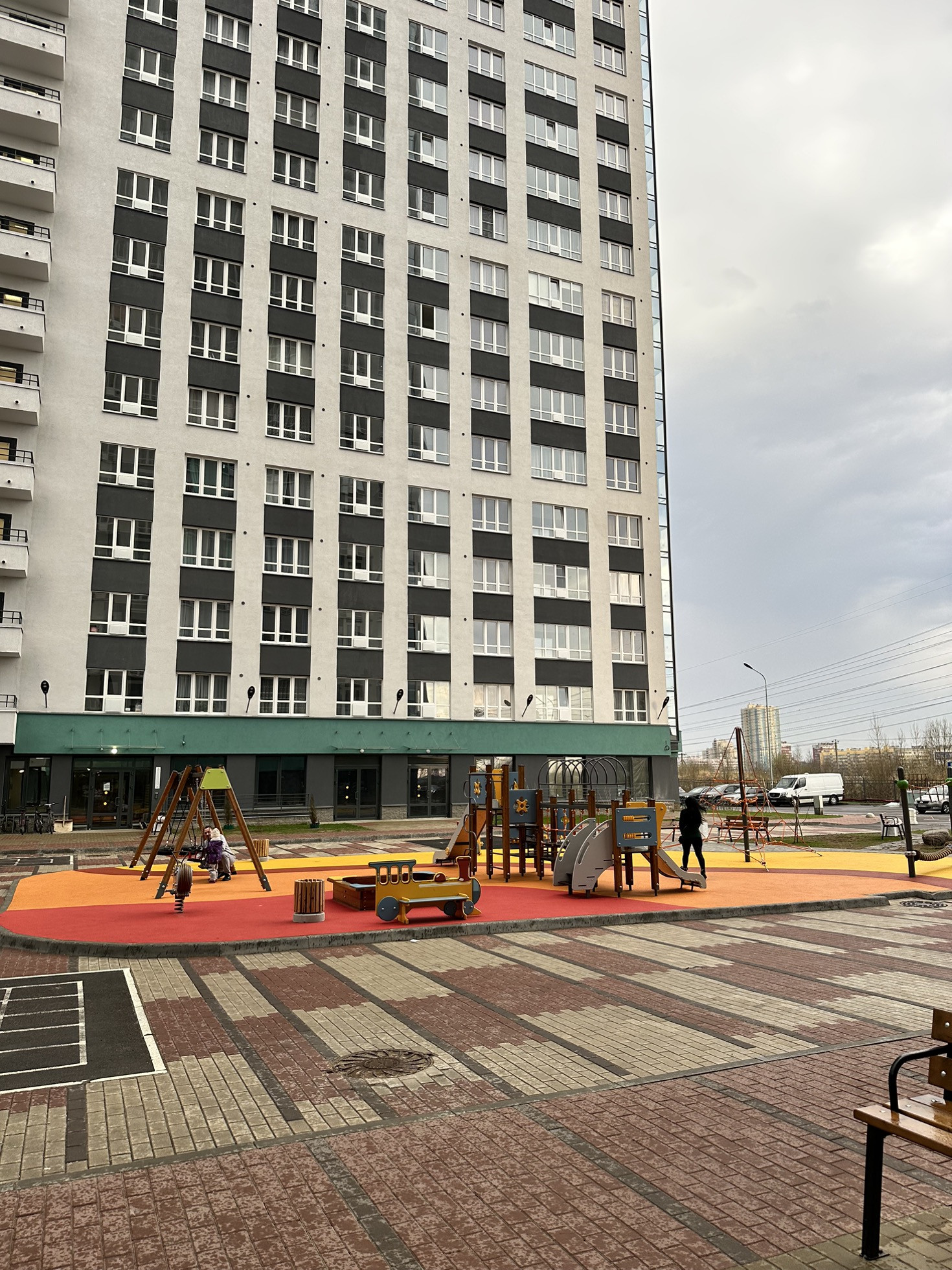 5. Продуманный комплекс: закрытая территория, двор без машин, подземный паркинг, на который вы можете спуститься сразу на лифте со своего этажа, современные детские площадки, парадная без ступеней, сквозной проход (на 2 стороны)