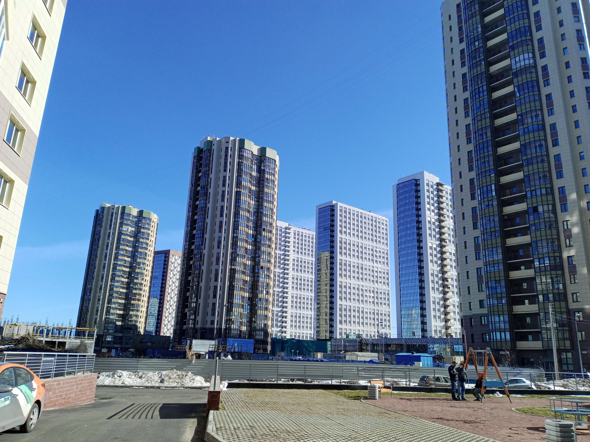 Во дворе детская площадка. Есть подземный паркинг и много наземных мест для авто.