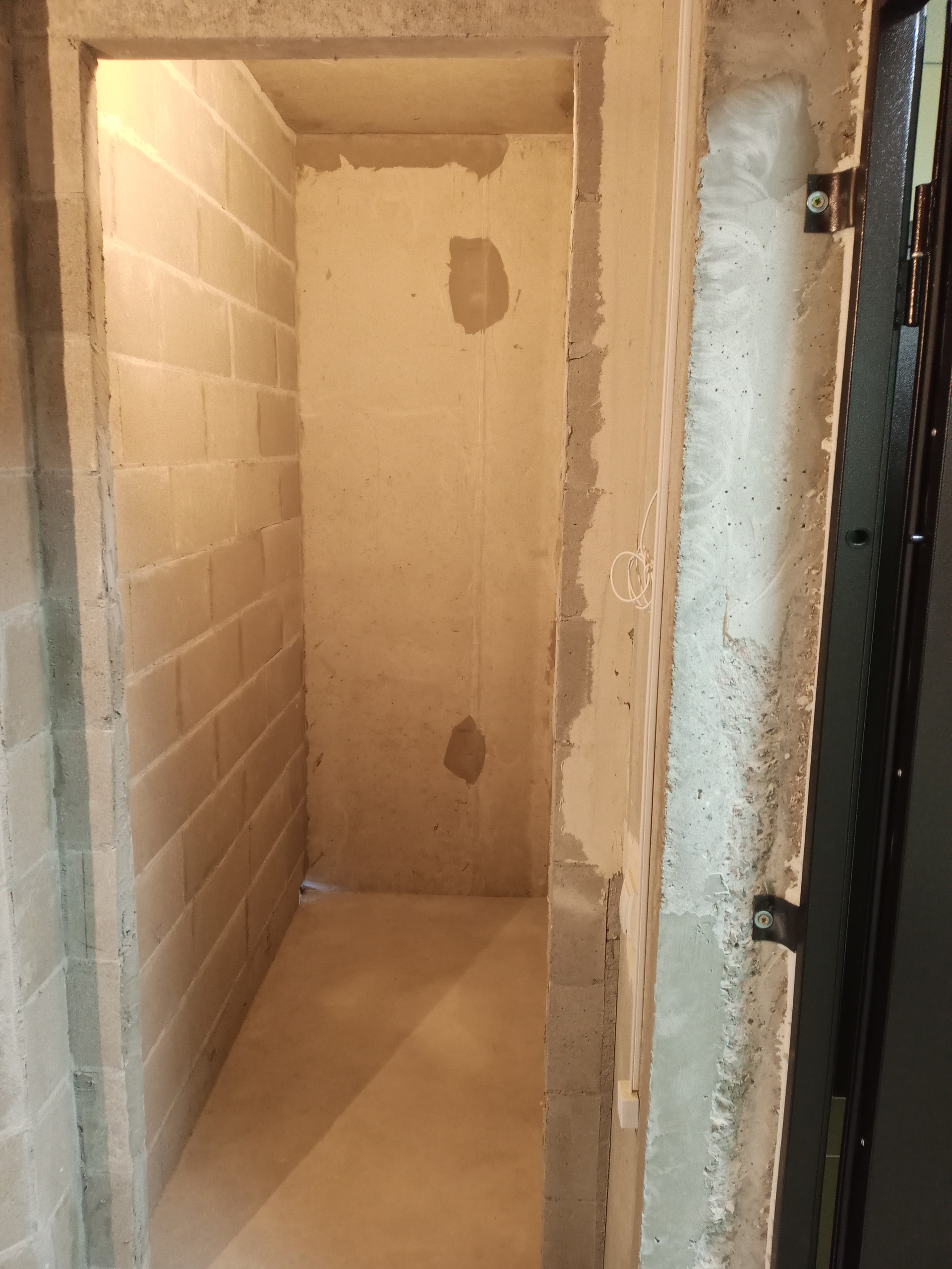 В квартире разведена электрика, стяжка пола, установлены розетки, счетчики на воду, радиаторы.