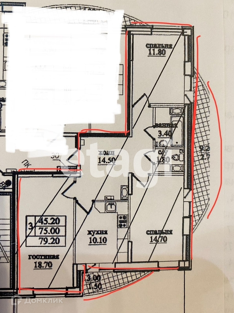 Общая площадь 75 м2