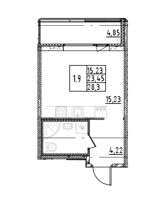 Общая площадь 28.3 м2