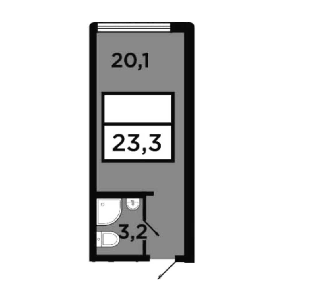 Общая площадь 23.3 м2