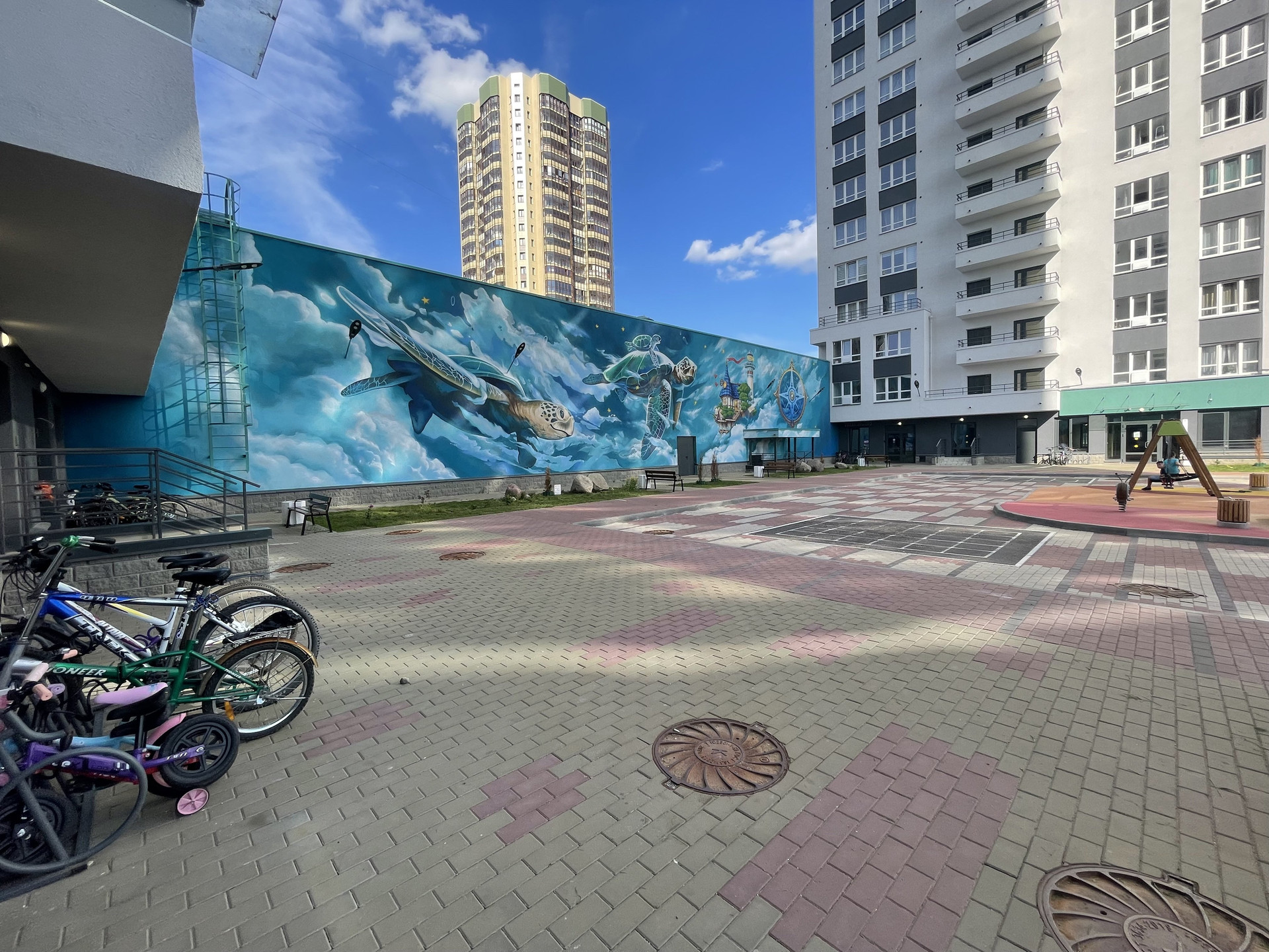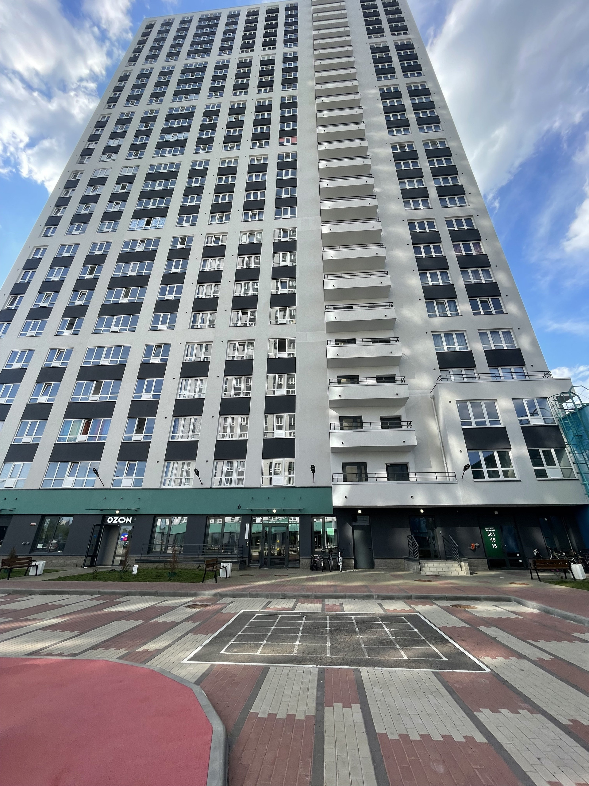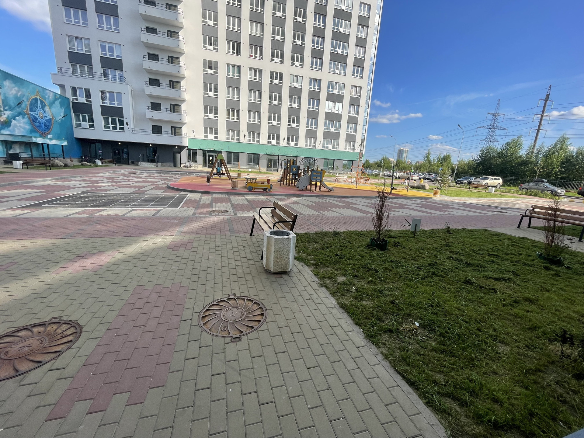 Закрытая, охраняемая территория с детскими и спортивными площадками.