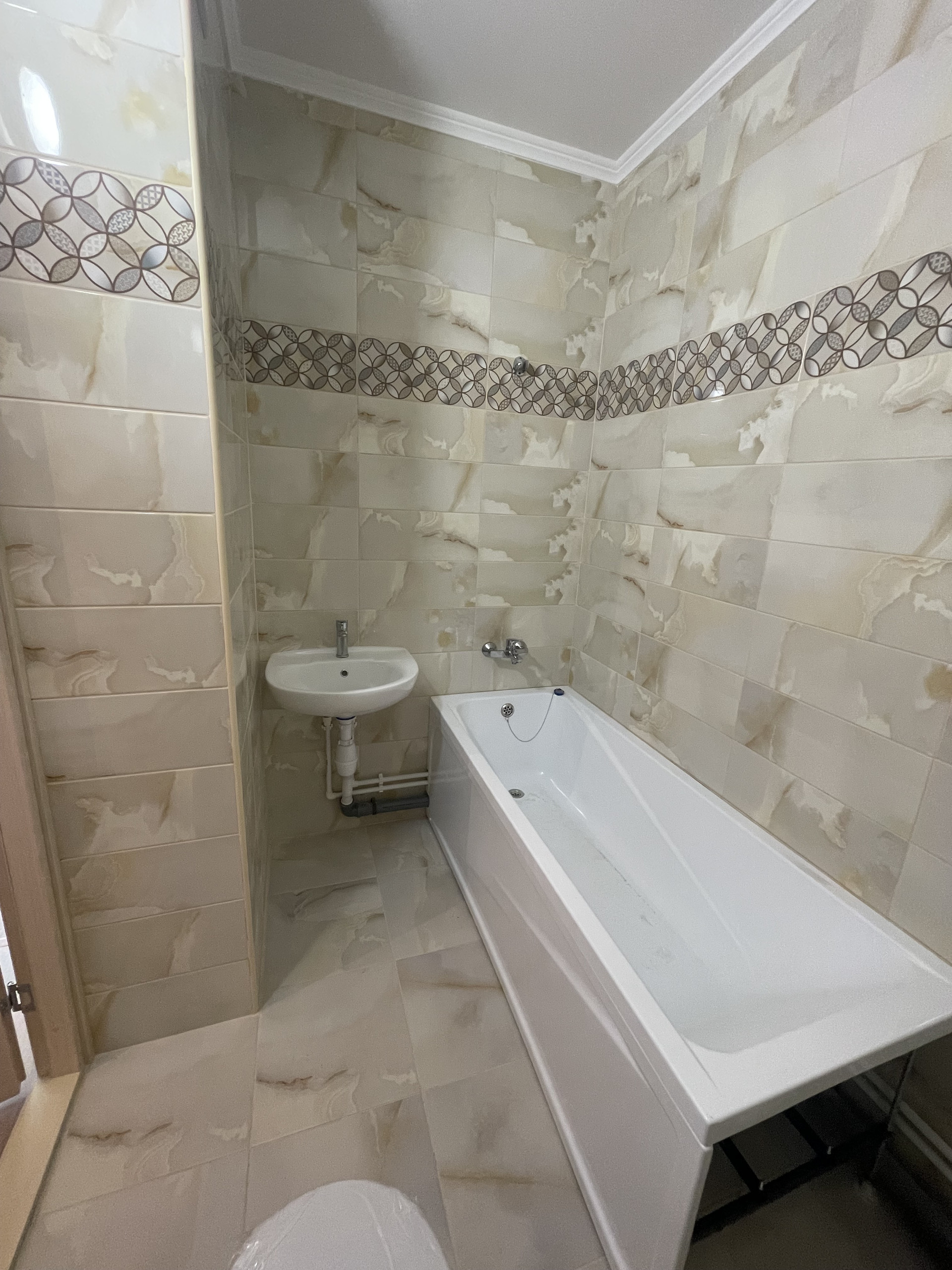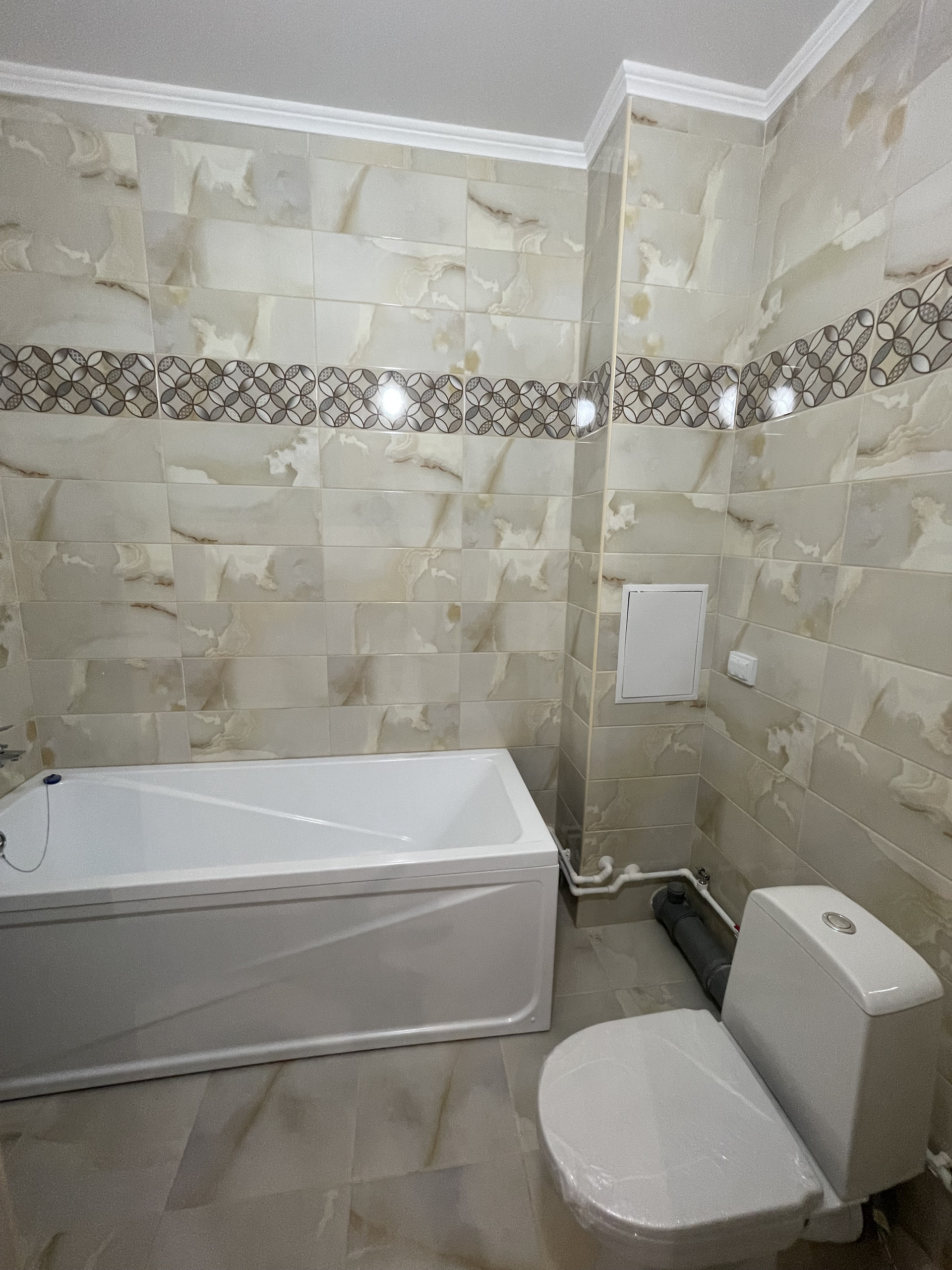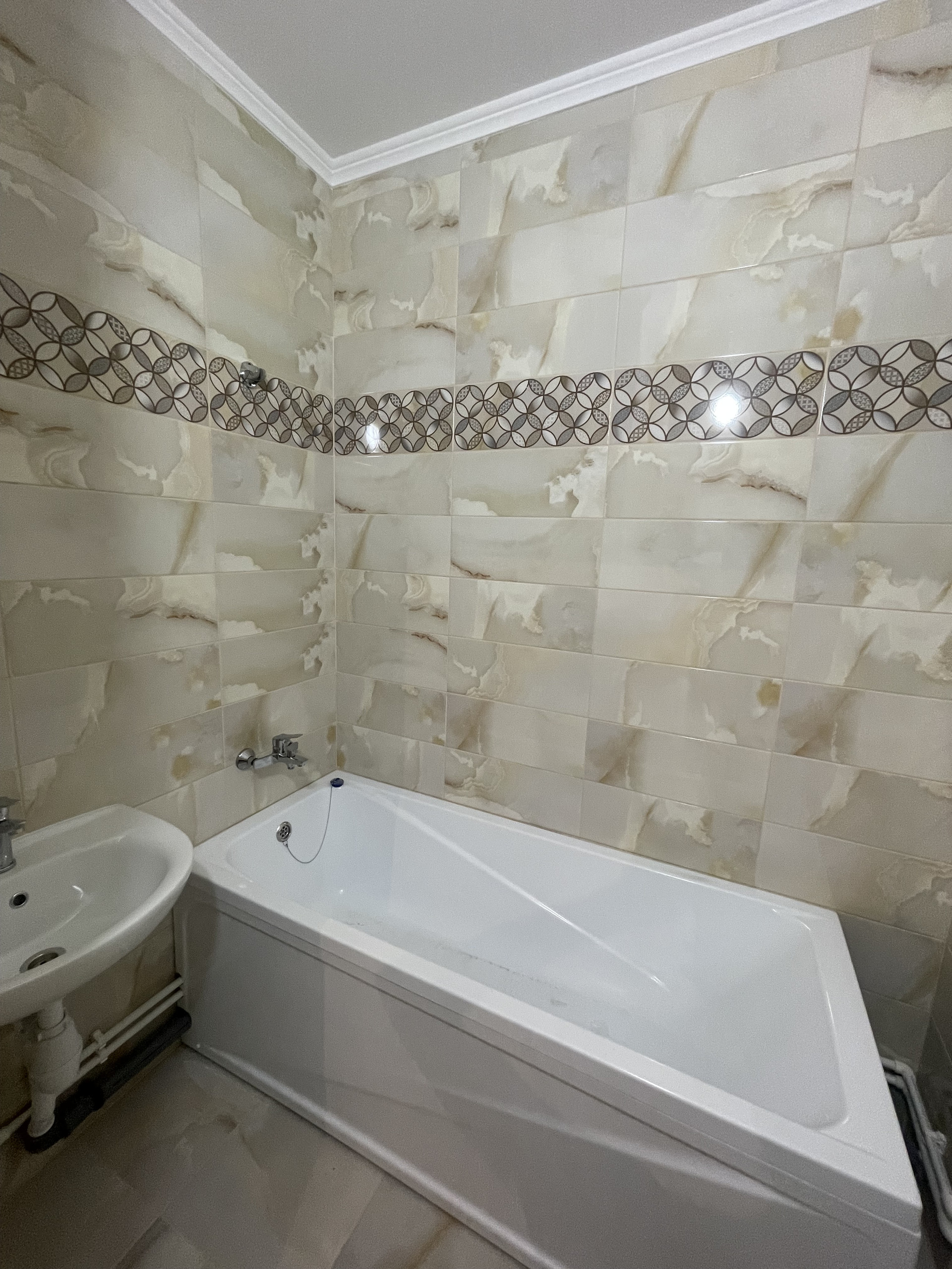 Кафель в ванной, радиаторы с терморегуляторами.