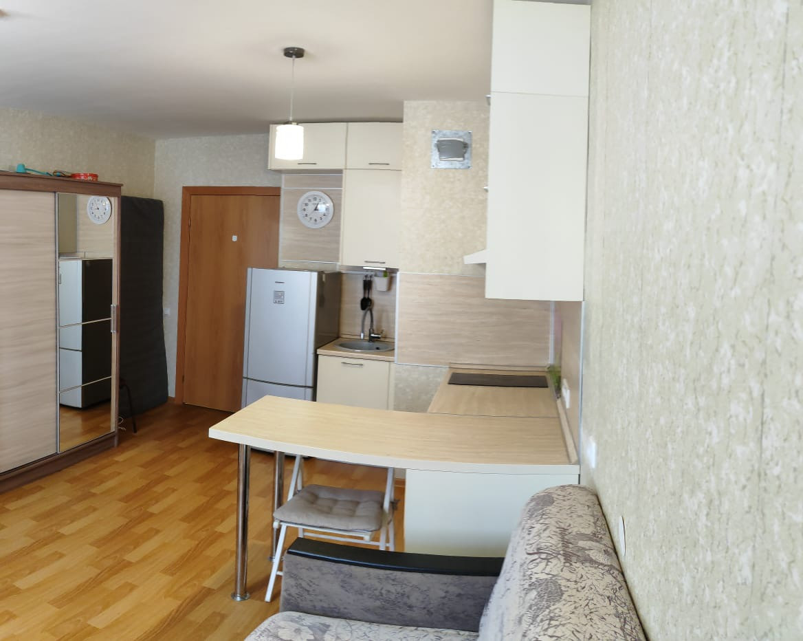 Продается квартира студия в развитом районе. Расположена по адресу (Парнас )Парголово улица Николая Рубцова дом 5 корпус 1. На 16-м этаже 27 этажного дома. Дом оснащен всем необходимым: техническое помещение для колясок и велосипедов, мусоропровод, видеонаблюдение. Рядом есть всё необходимое для комфортного проживания: детские сады, школы, в шаговой доступности поликлиника,  станция скорой помощи