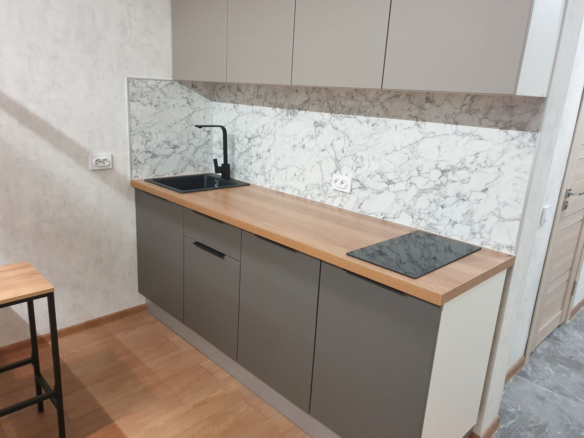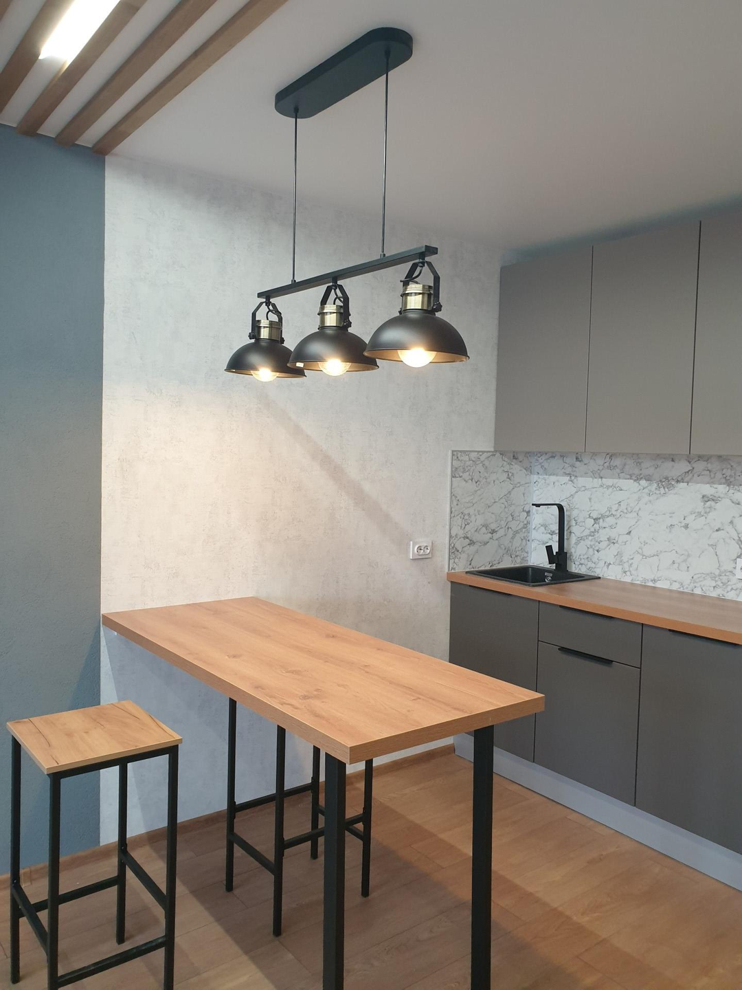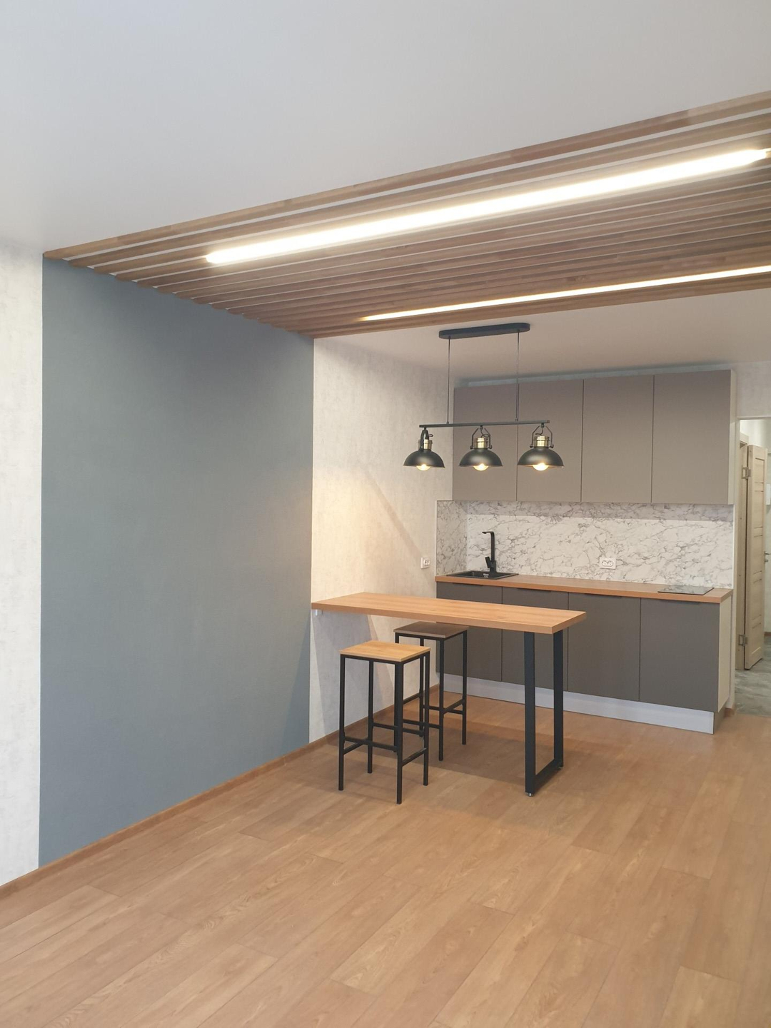 Студия от собсвенника, ипотека, без маткапитала, никто не прописан. В квартире выполнен качественный дизайнерский ремонт: декоративная штукатурка, натяжные потолки, потолочная рейка, барная стойка. Во всех зонах три режима освещения, в комнате управляется как с пульта, так и с выключателя. Кухня изготовлена на заказ, раковина - искусственный камень, варочная панель Krona.  Санузел совмещенный, душевая кабина, инсталляция, зеркало с подсветкой,  накладная раковина, стиральная машина Hi