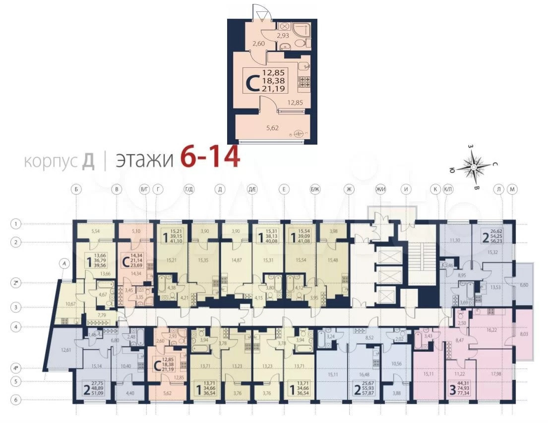 Общая площадь 21 м2