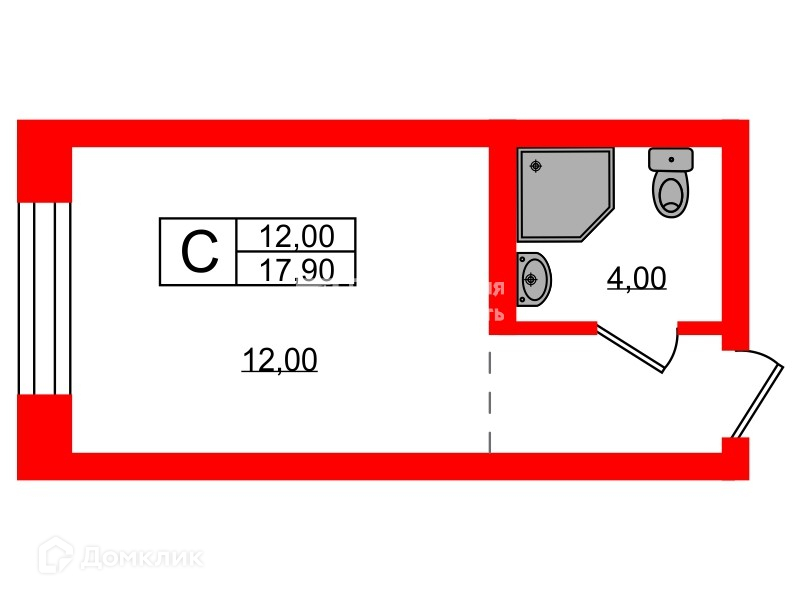 Общая площадь 17.9 м2