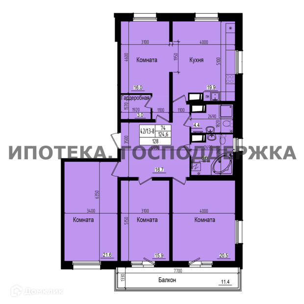 Общая площадь 128 м2