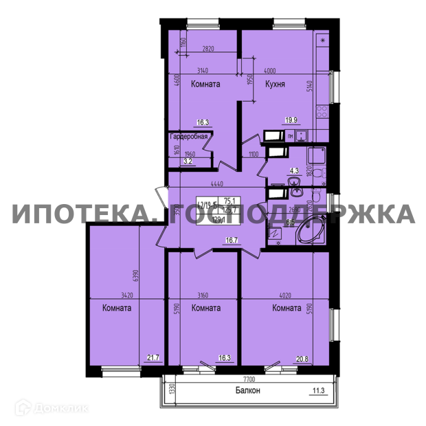 Жилая площадь 75.1 м2