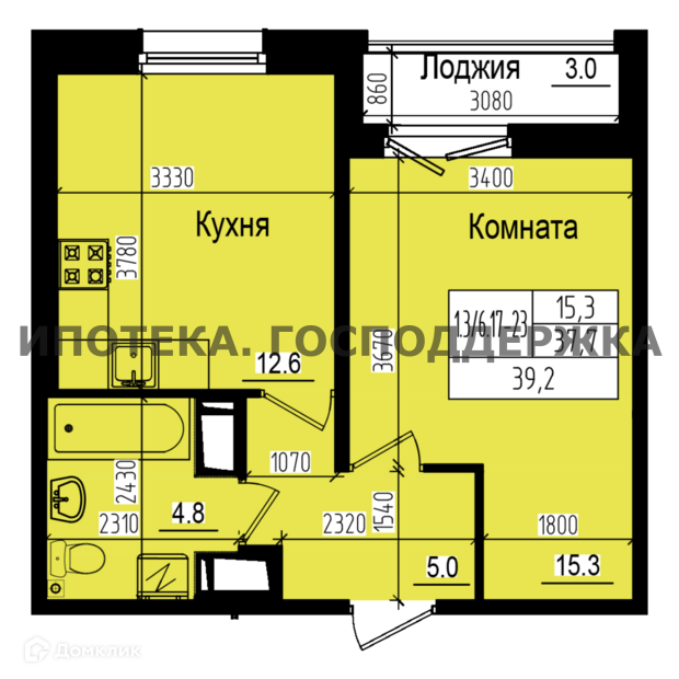 Общая площадь 39.2 м2