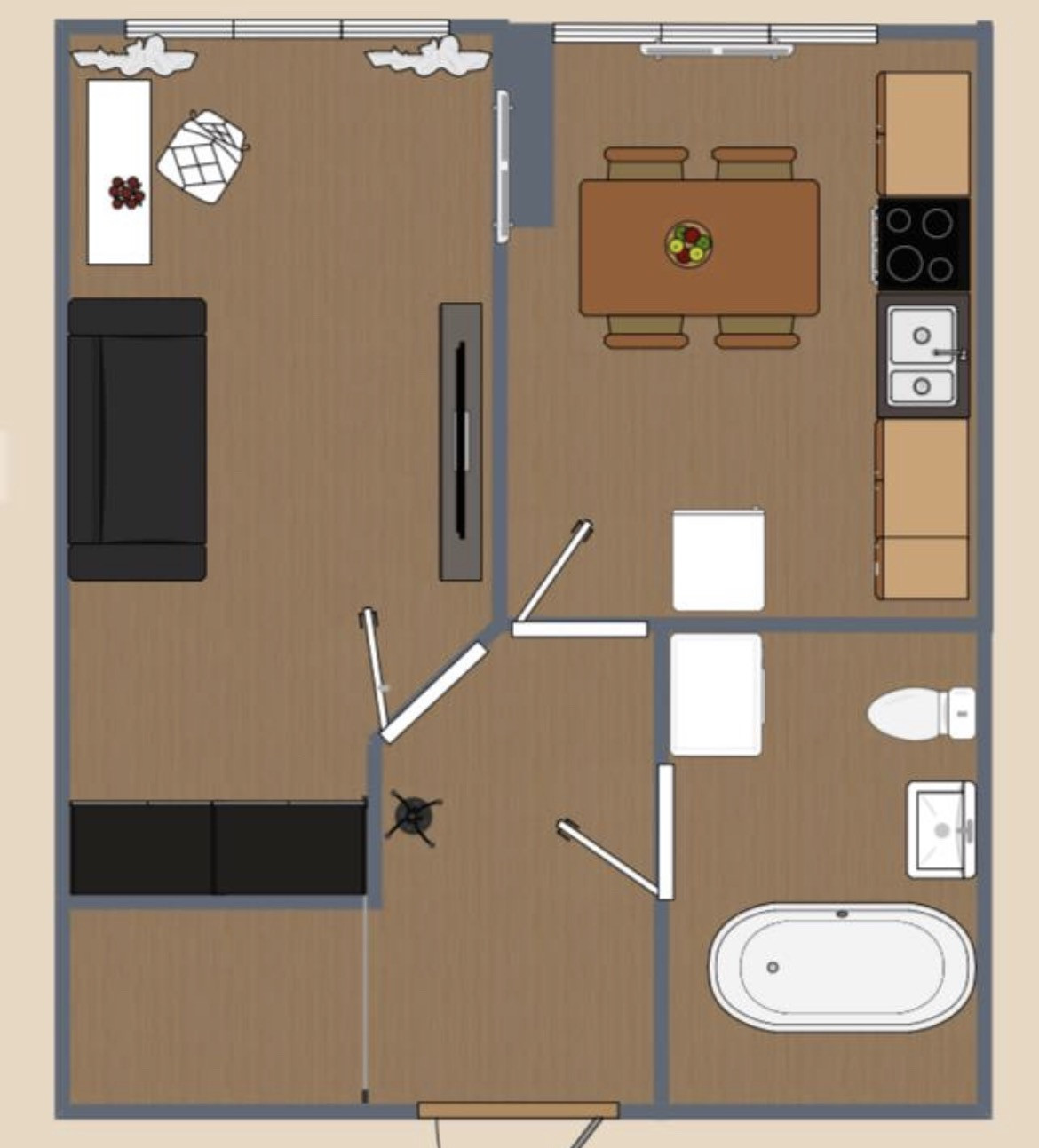 ✅Комната большая, коридор вместительный, кухня-гостиная, санузел совмещённый.