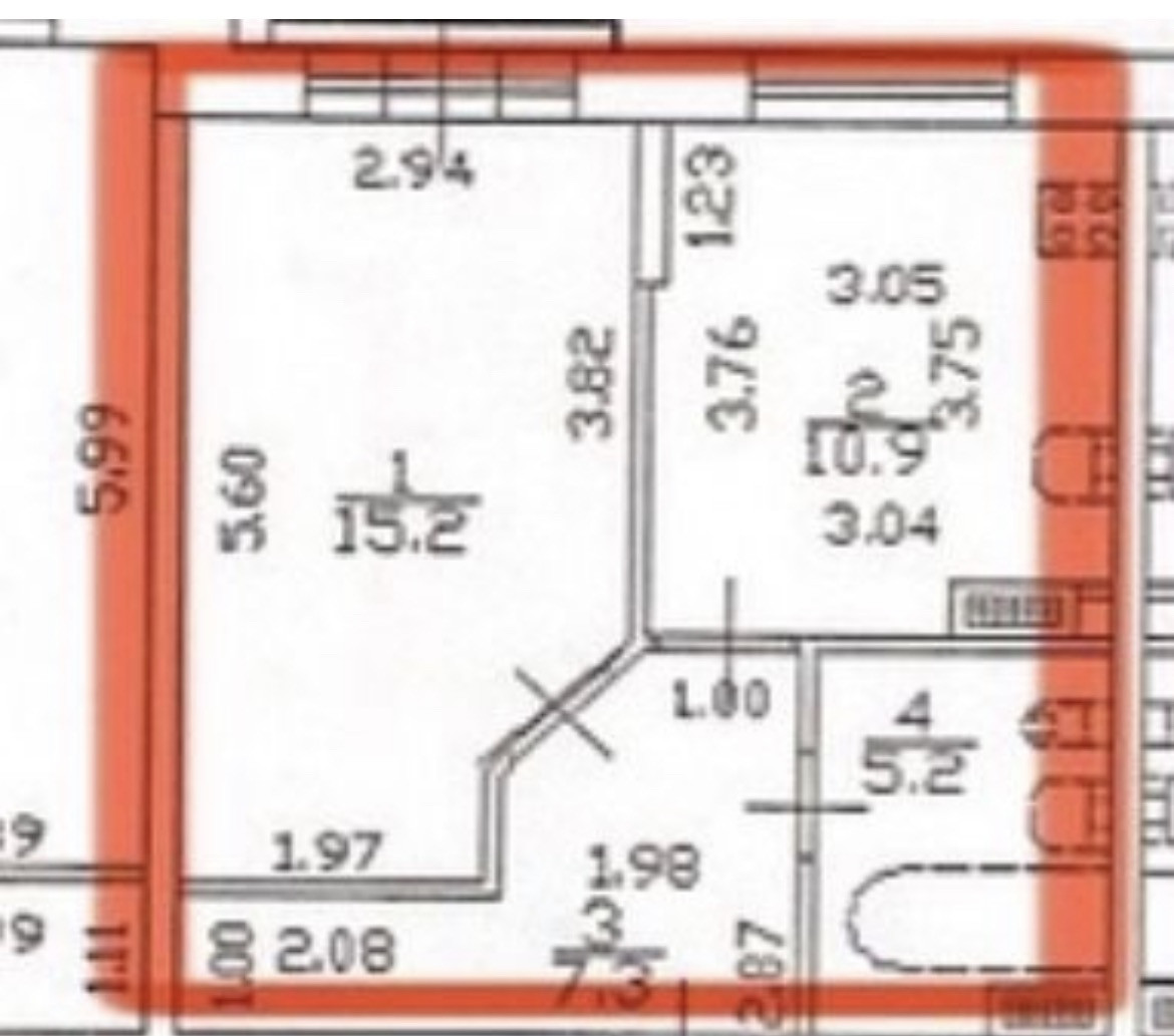 Жилая площадь 15.2 м2