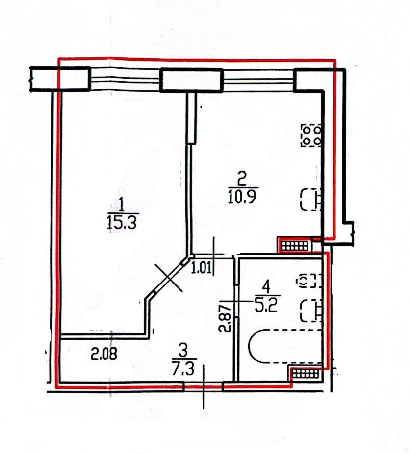 Жилая площадь 15.3 м2