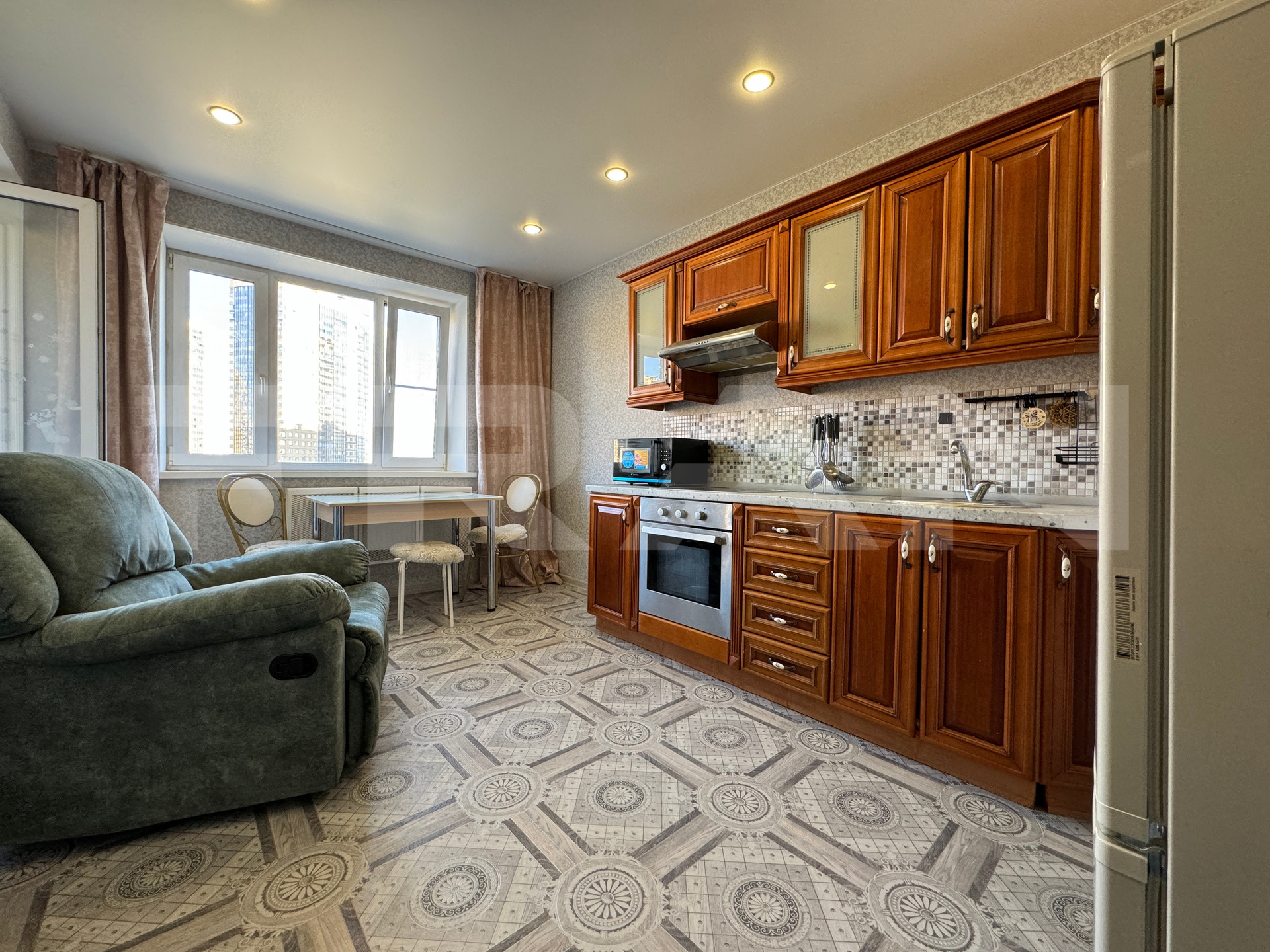 В квартире остается кухонный гарнитур, частично мебель (по договоренности).