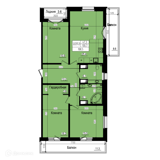Общая площадь 108.5 м2