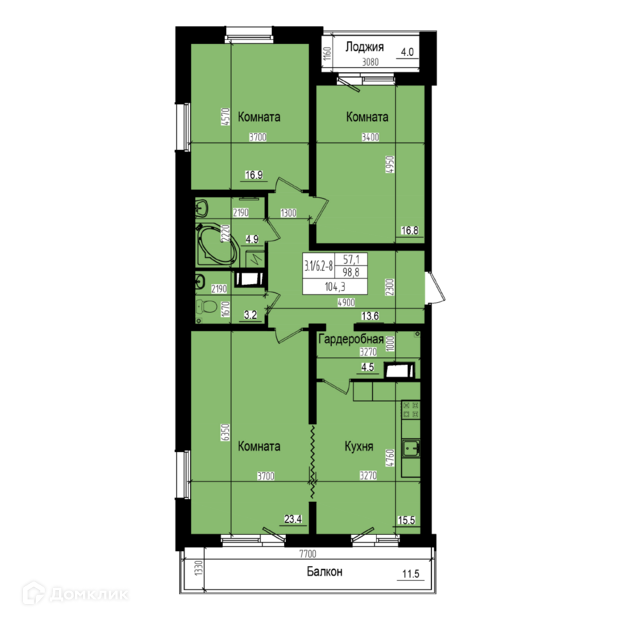 Общая площадь 104.3 м2