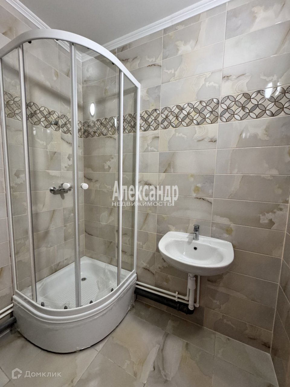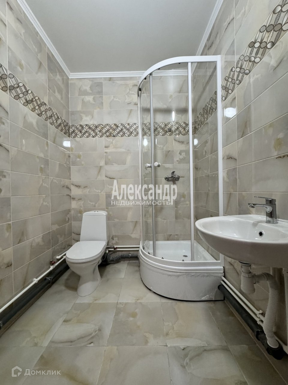 Совмещенный санузел с душевой кабиной. Квартира с ремонтом от застройщика, на полу- ламинат, идеально выровнены стены, в санузлах  - плитка.