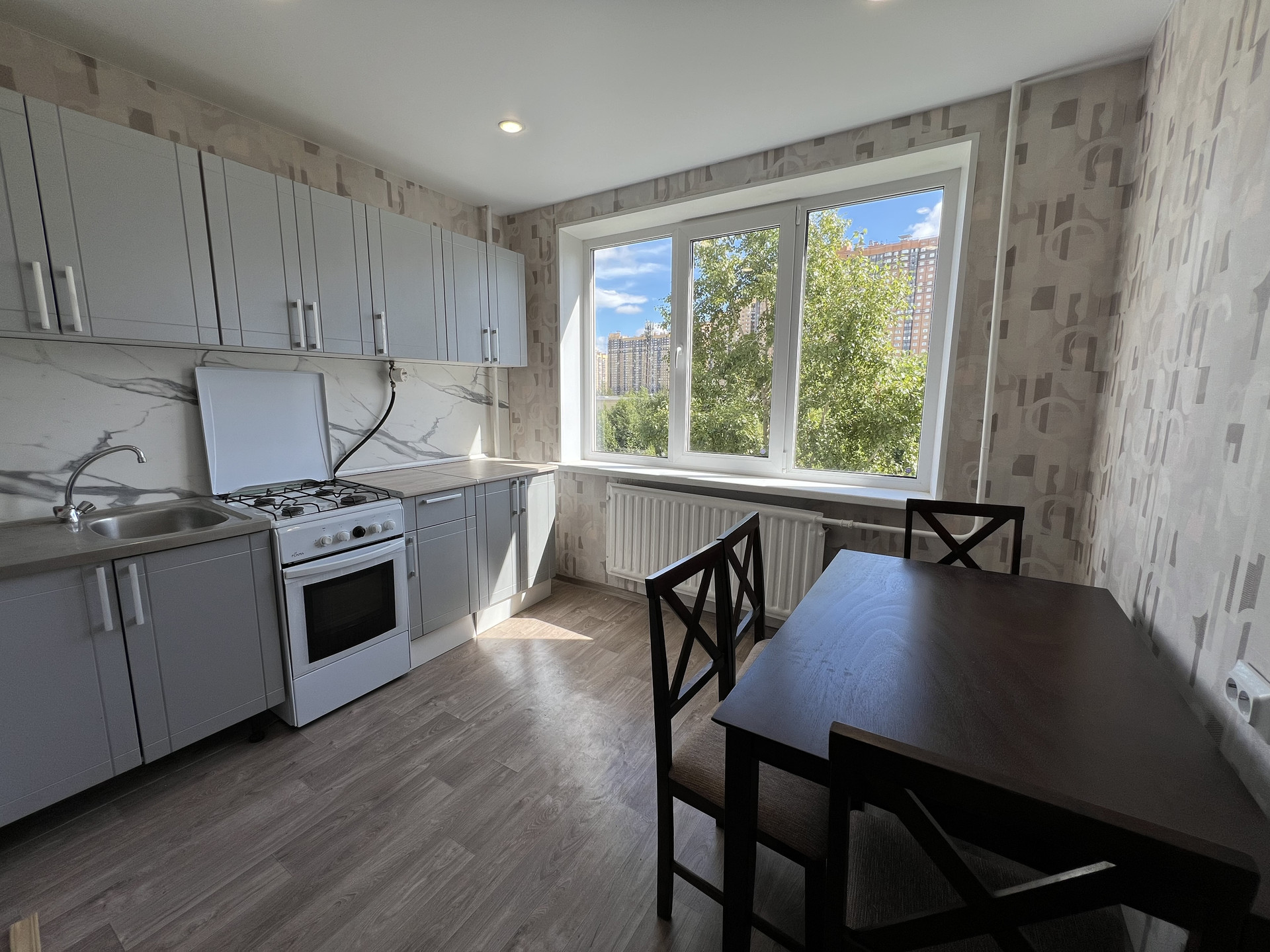 Просторная жилая площадь составляет 17.3 квадратных метра, а кухня — 7.8 квадратных метров, что позволяет комфортно разместиться как для приготовления пищи, так и для семейных ужинов. В квартире выполнен косметический ремонт, благодаря чему новым владельцам не потребуется дополнительных вложений, также имеется балкон.