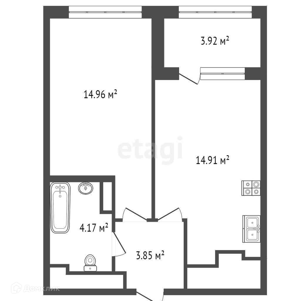 Жилая площадь 14.96 м2