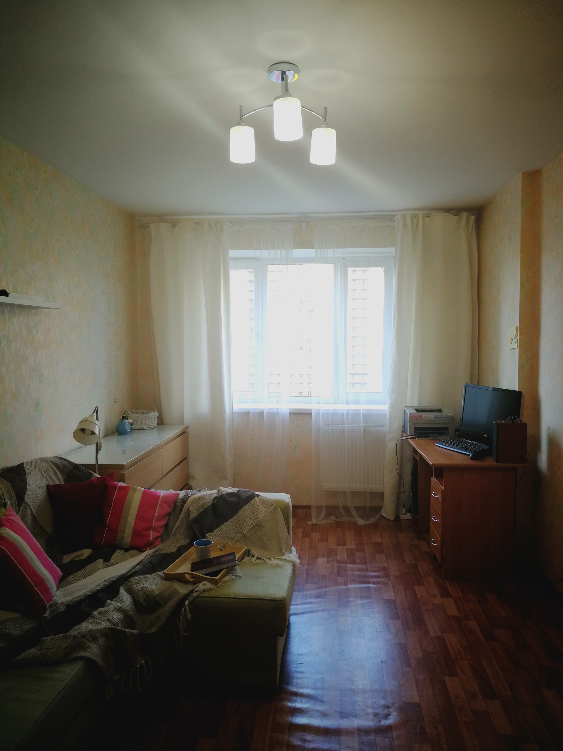 В квартире выполнен ремонт для себя. Удобная планировка в совокупности с высоким этажом делают квартиру комфортной для проживания семьи. Вместительный шкаф-гардероб в комнате - для удобства хранения, просторная кухня разделяет две изолированные комнаты, большие по площади туалет и ванна позволяют поставить всю необходимую бытовую технику и места для хранения.