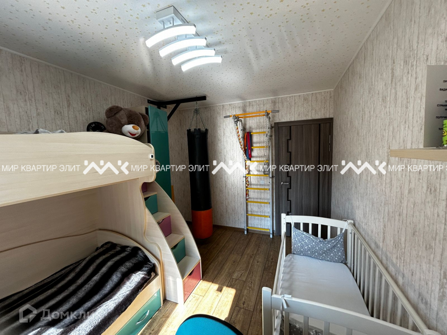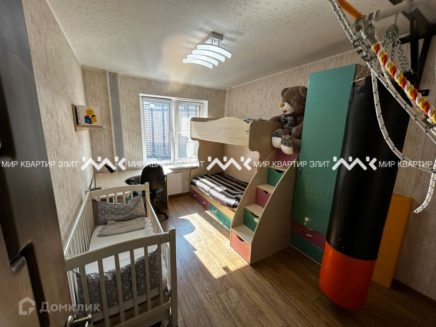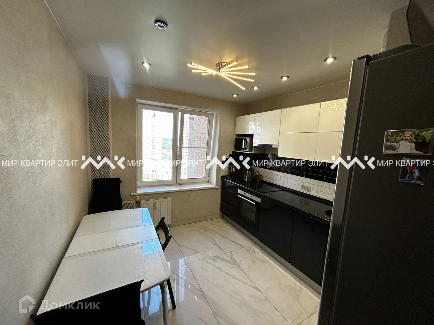 3 отдельных комнаты и кухня, оборудованная встроенной мебелью и техникой.