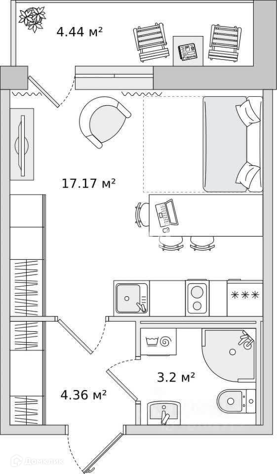 Общая площадь 24.4 м2