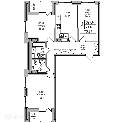 Количество комнат 3