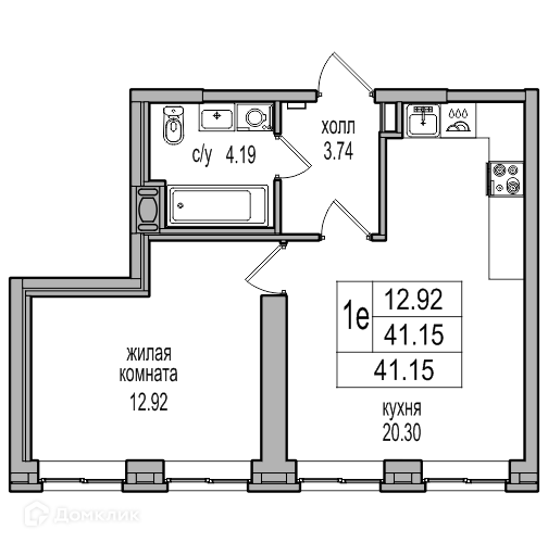 Общая площадь 40.6 м2