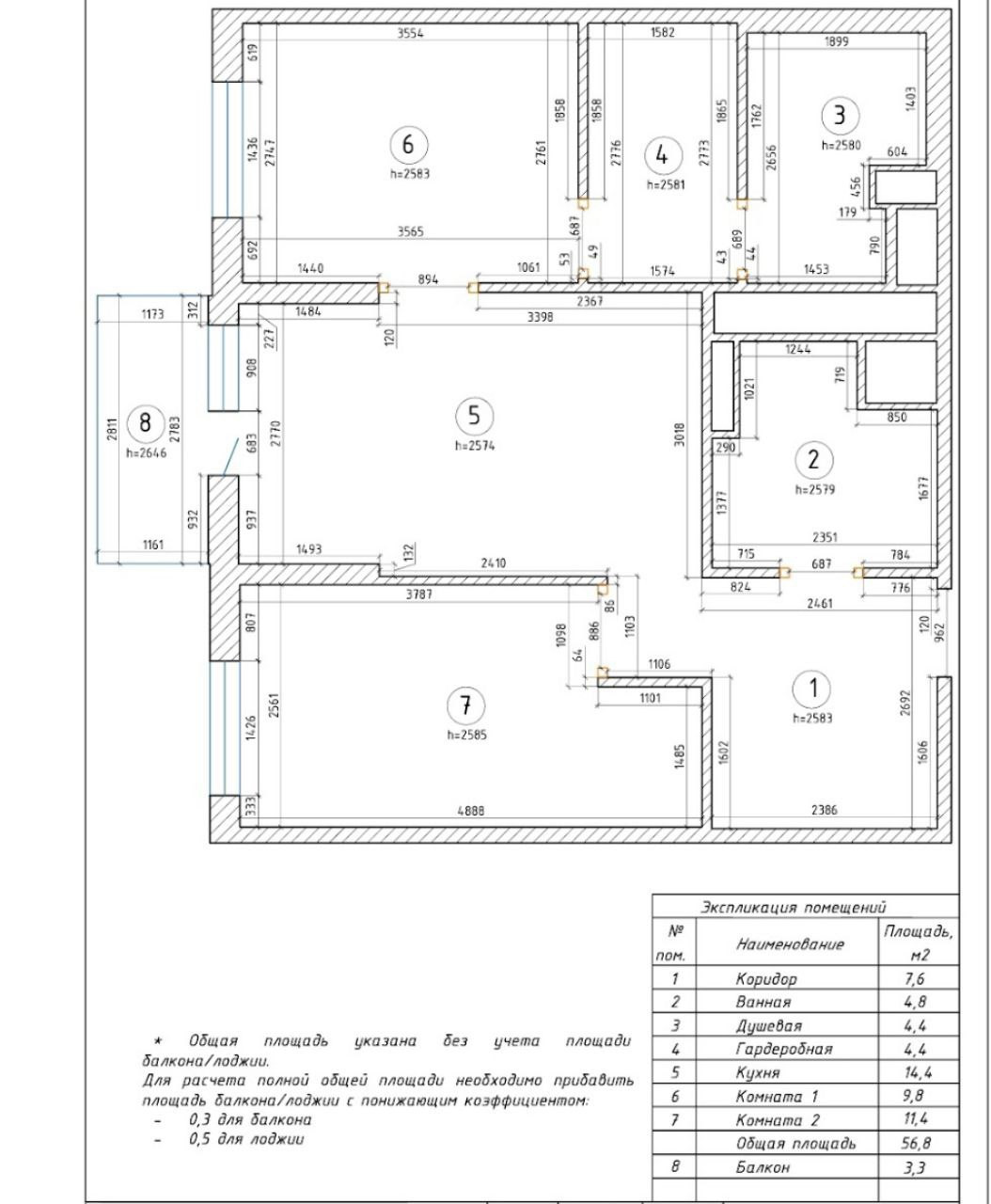 Общая площадь 56.8 м2