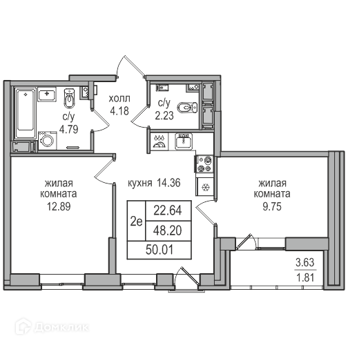 Общая площадь 49.6 м2