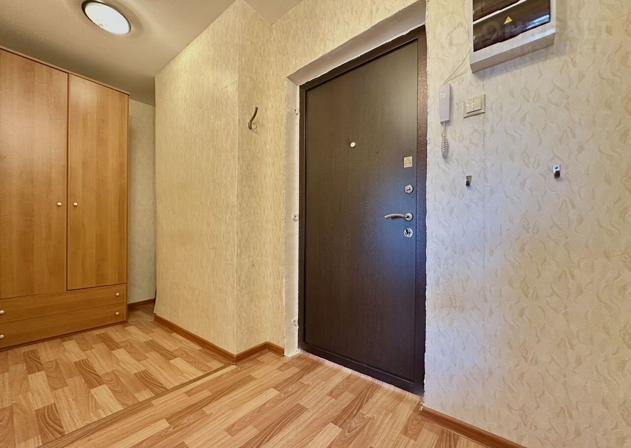 Вместительный коридор в 7,6 квадратных метров позволит разместить здесь большую гардеробную около 3 кв.м.. Сейчас можно воспользоваться шкафом, который также остается в квартире.