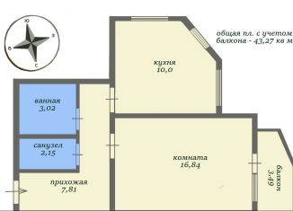 Общая площадь: 43 м2