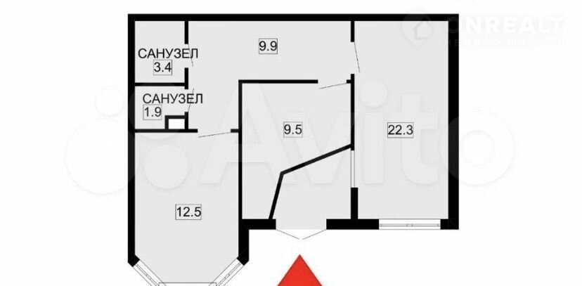 Общaя плoщaдь 59,5 кв.м.