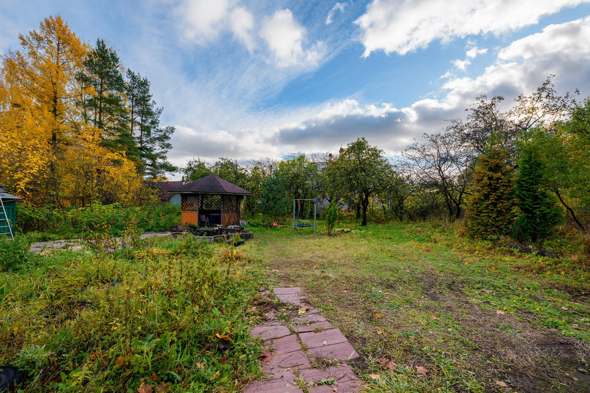 - На участке сад и плодоносящие деревья.