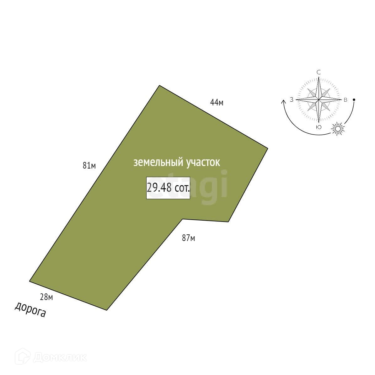 В продаже земельный участок площадью 29.48 соток.